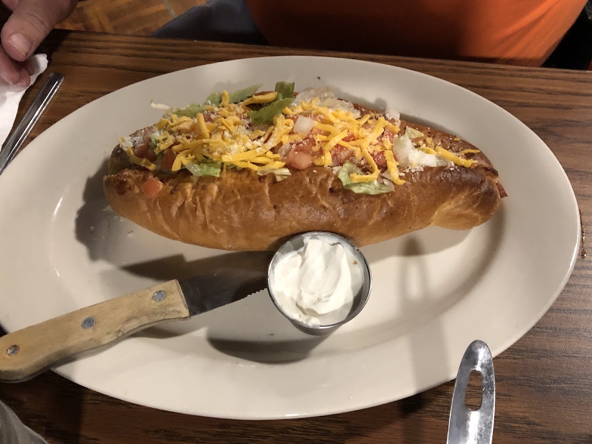 Interesting setup. You walk into a band area, pass up the carry out counter to find the hostess to seat you. She was very friendly. They were having a big party in the main restaurant, she asked if we’d like to sit in the band area (has a stage) so we did. A lot of choices on the menu. We got the taco sub & pizza. Sub needed something (less bread or more meat) it was ok. The Alfano pizza was fantastic. Will go back again & try something else . I believe the owner stopped at our table to show appreciation for us staying even though we had to sit in that area. It was fine. It looks like it’ll be a great place once they are finished with the whole place. Second time stopping in. We were able to eat in the restaurant, they have an engagement party in the big room. They lite the fireplace, so pretty. Plenty of seating. There were other people, just didn’t want to show in the pictures. They take reservations also.