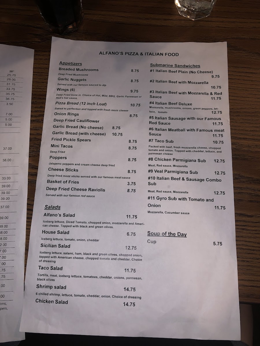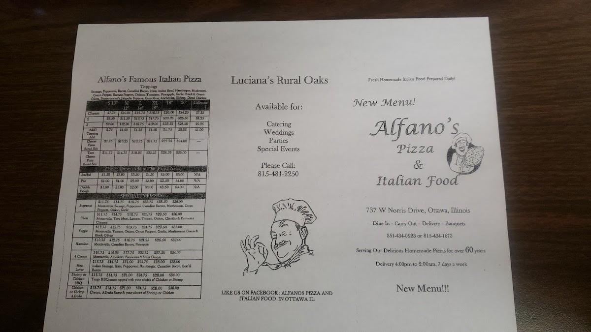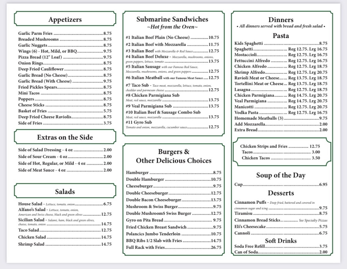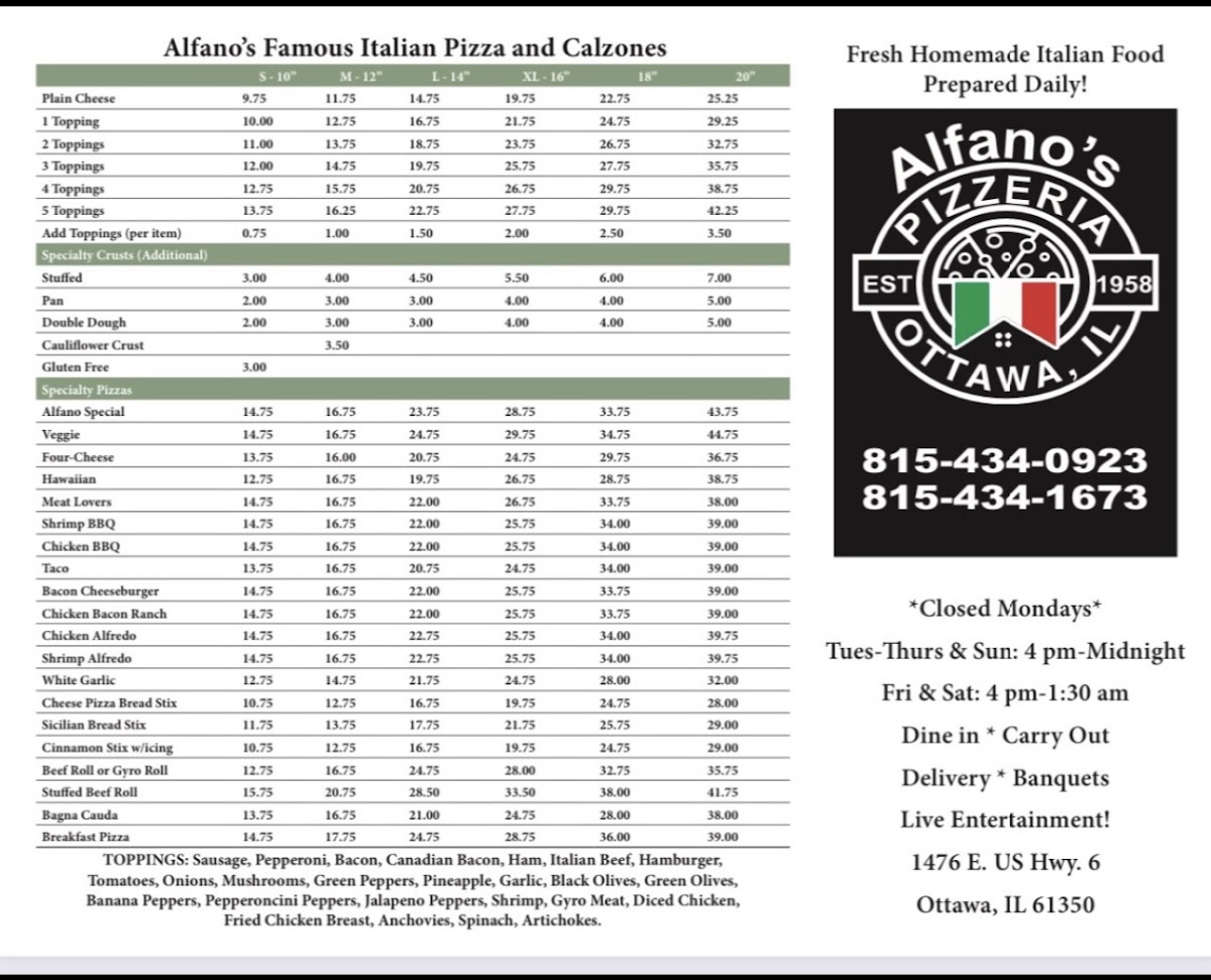 Alfano's Pizza of Ottawa Menu